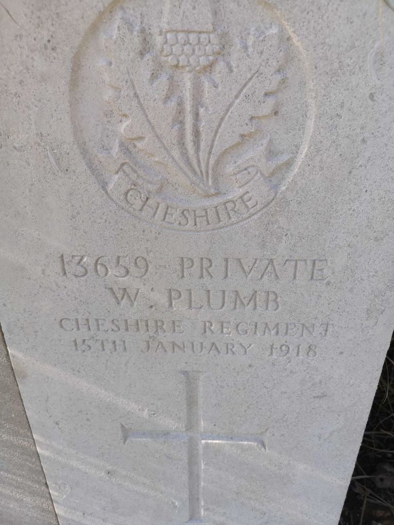 15/01/1918 Private William Plumb 9th Bn. St. Sever Cemetery Extension, Rouen, France. ‘13659’ P. VI. E. 10B.