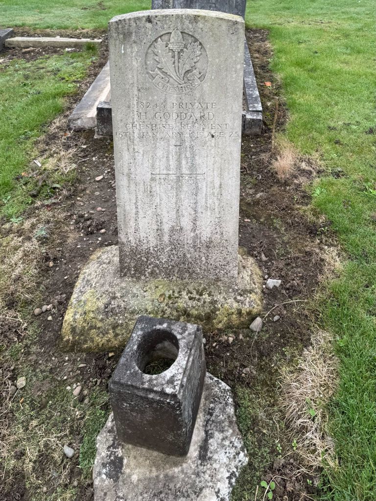 16/01/1919 Private Harold Goddard (Age 25) Macclesfield Cemetery, United Kingdom. ‘18245’ X. 19482. Husband of Olive Goddard, of 12 Court, 5 House, King Edward St., Macclesfield.