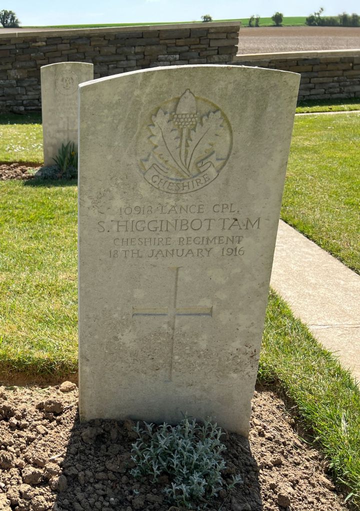18/01/1916 Lance Corporal Samuel Higginbottam 1st Bn. Citadel New Military Cemetery, Fricourt, France. ‘10918’ III. B. 1.
