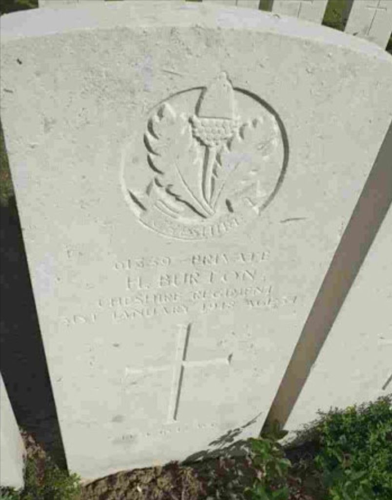 31/01/1918 Private Harold Burton (Age 34) 21st Bn. Fins New British Cemetery, Sorel-Le-Grand, France. ‘61339’ IV. A. 13. Husband of Mrs. M. A. Burton, of 11, Smith St., Lancashire Hill, Stockport.