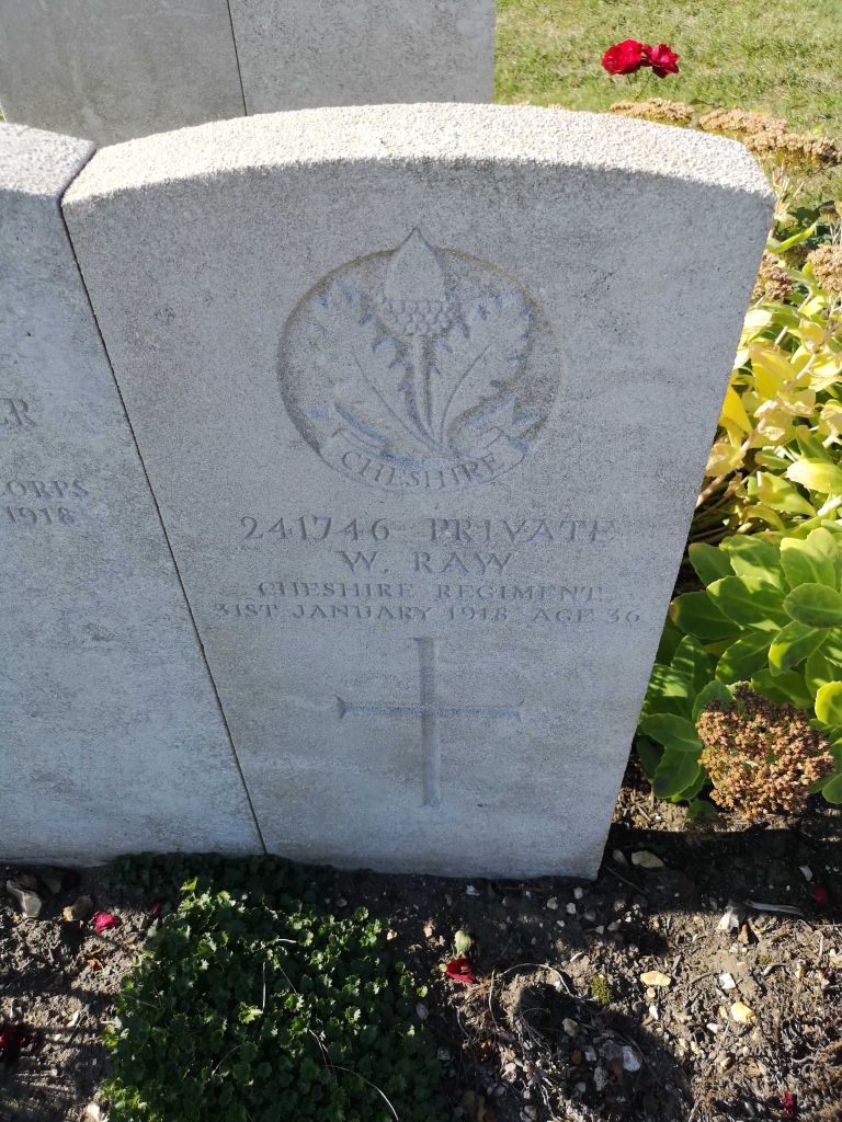 31/01/1918 Private William Raw (Age 36) “B” Coy. 11th Bn. St. Sever Cemetery Extension, Rouen, France. ‘241746’ P. VI. I. 10B. Son of Francis and Agnes Raw (nee Shepherd), of Yorkshire.