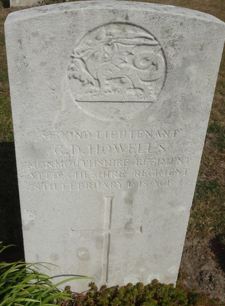 28/02/1918 Second Lieutenant George Davey Howells (Age 22) 15th Cement House Cemetery, Belgium. I. N. 3. Son of Harry Haywood Howells and Hannah Elizabeth Howells, of “Sea View,” Brynderwen Rd., Newport, Mon. (attached to 15th Bn.)