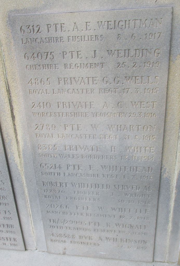 25/02/1919 Private James Weilding (Age 45) Depot Bn. Manchester Southern Cemetery, United Kingdom. ‘64075’ Q. 416 (Screen Wall). Husband of Hilda Mary Weilding, of 19, Wesley St., Grosvenor St., Chorlton-on-Medlock, Manchester. 25 years’ service with the 3rd Bn. Lancashire Fusiliers.