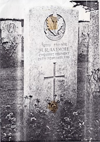 28/02/1918 28 Private Harry Blakemore 1st/6th Bn. Fins New British Cemetery, Sorel-Le-Grand, France. ‘52116’ IV. C. 14. (pic from findagrave.com – with thanks)