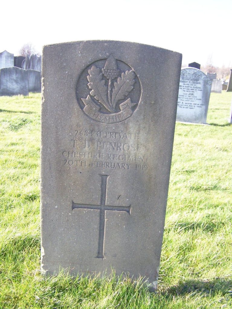 20/02/1919 Private Thomas Dowling Penrose (Age 18) 2nd/6th Bn. Bootle Cemetery, United Kingdom. ‘268431’ II. CE. 365. Son of John D. and Ellen Penrose, of 46, Tawchester St., Litherland, Liverpool. (pic from findagrave.com – with thanks)