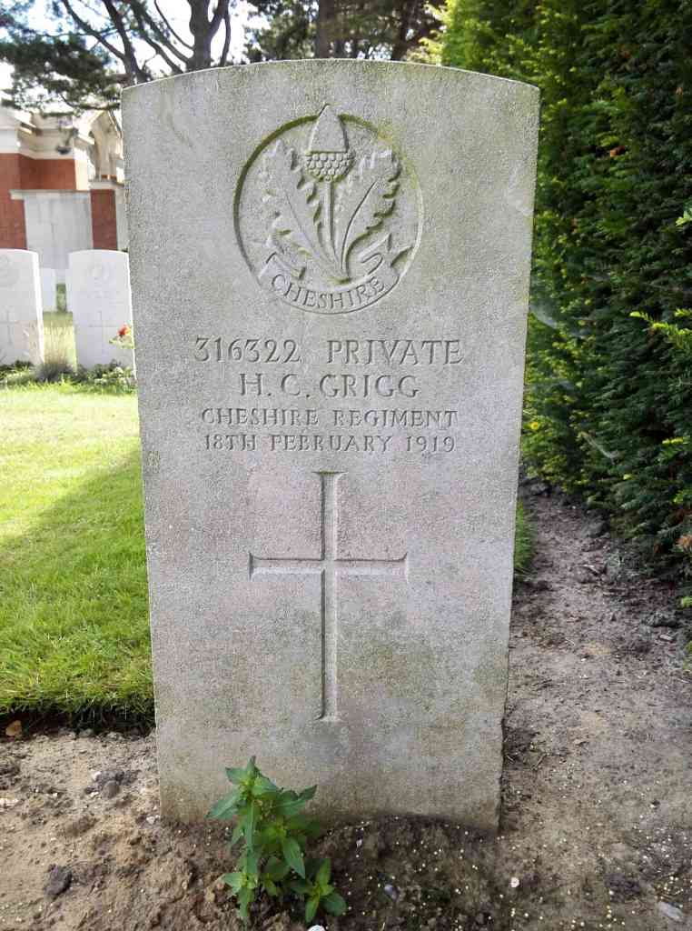 18/02/1919 Private Harold Clifford Grigg 23rd Bn. Dunkirk Town Cemetery, France. ‘316332’ IV. F. 1.