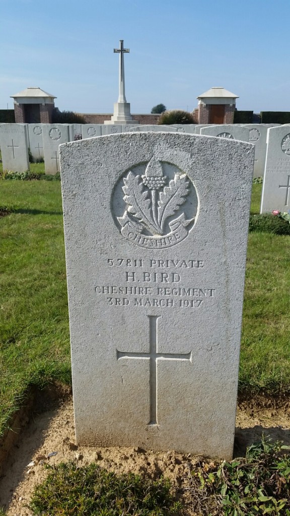 3/03/1917 Private Hedley Bird 16th Bn. Fouquescourt British Cemetery, France. ‘57811’ I. AA. 1.