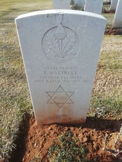 10/03/1918 Private Barnet Dalinsky (Age 28) 1st Bn. Giavera British Cemetery, Arcade, Italy. ‘49295’ Plot 1. Row D. Grave 1. Son of Jacob and Rebecca Dalinsky, of 16, Broughton Street, Cheetham, Manchester. (pic from findagrave.com – with thanks)