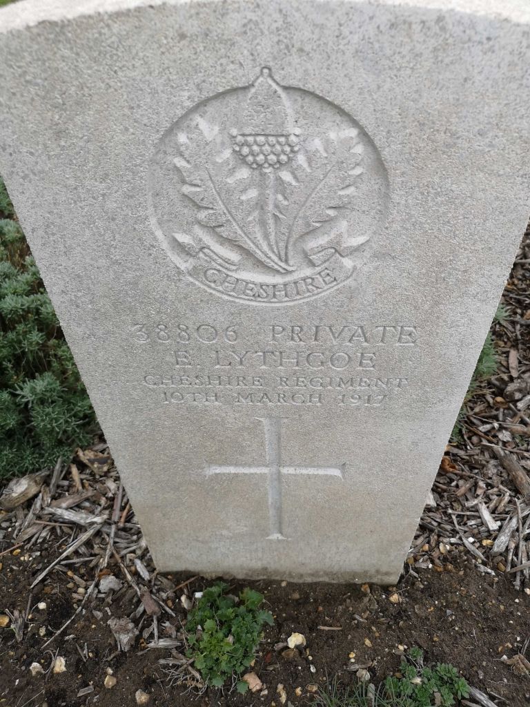 10/03/1917 Private Edward Lythgoe 19th Bn. St. Sever Cemetery Extension, Rouen, Seine-Maritime France. ‘38806’ O. VI. I. 3. (pic from findagrave.com – with thanks)