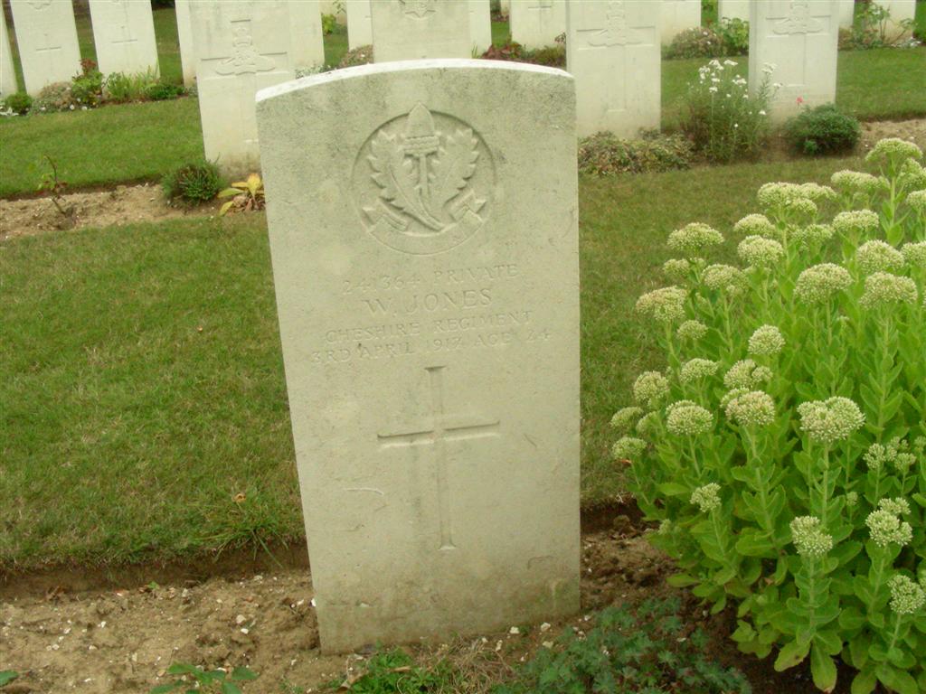 3/04/1917 Private Walter Jones (Age 24) 1st/5th Bn. Achicourt Road Cemetery, Achicourt, Pas de Calais France. ‘241364’ B. 13. Son of Arthur and Mary Jones, of Dobinette Lane, Baguley, Cheshire. (pic from findagrave.com – with thanks)
