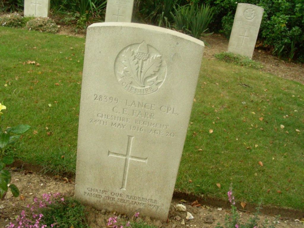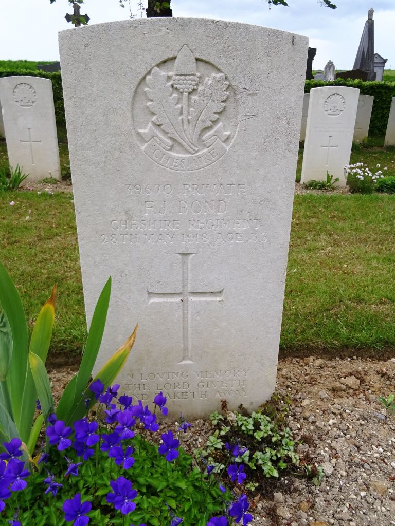 30/05/1918 Private Fred Nield (Age 20) 1st Bn. Tannay British Cemetery, Thiennes, Nord France. ‘49305’ Son of Tom and Emma Nield, of Macclesfield, Cheshire.