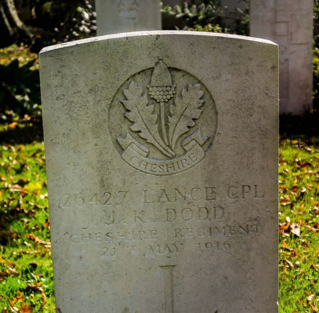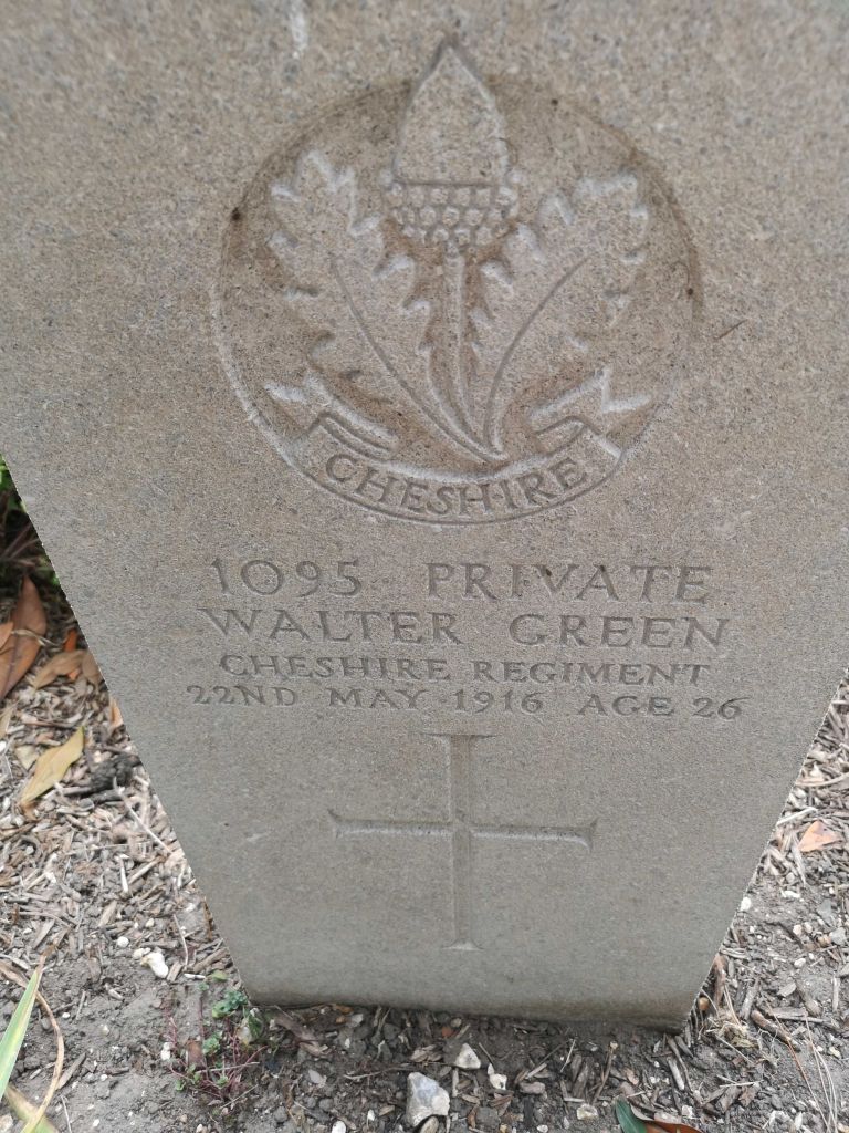 25/05/1915 Private Walter Le Lacheur (Age 30) 2nd Bn. Ypres (Menin Gate) Memorial, West-Vlaanderen Belgium. ‘25354’ Husband of Emily Helena Wenlock (formerly Le Lacheur), of 115, Christleton Rd., Chester.