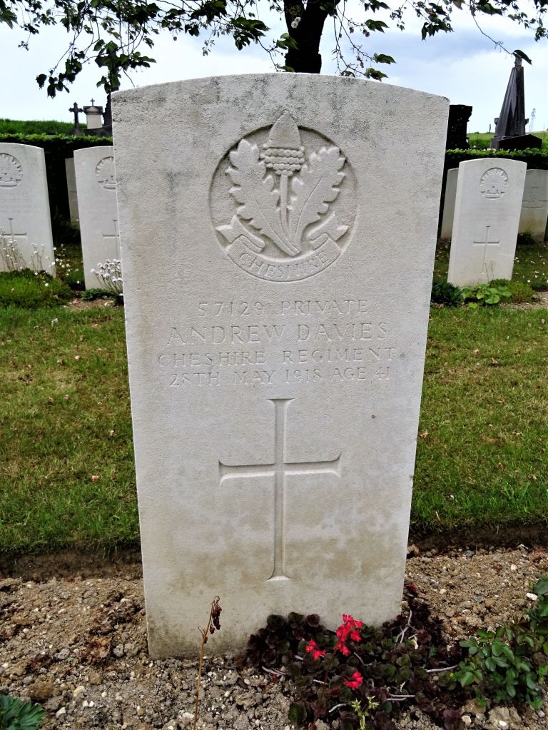 25/05/1915 Private Edward Williams (Age 39) 2nd Bn. Bailleul Communal Cemetery Extension, Nord, Nord France. ‘11945’ Husband of M. E. Williams, of 6, Cottrell’s Buildings, Oxford Rd., Dukinfield, Cheshire.