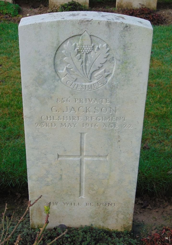 30/05/1918 Private Jonathan Stringer (Age 36) 1st Bn. Tannay British Cemetery, Thiennes, Nord France. ‘25257’ Son of the late Joseph and Hannah Stringer, of 27, Heath Rd., Runcorn; husband of Sarah Elizabeth Stringer, of 9, Grosvenor St., Runcorn, Cheshire.