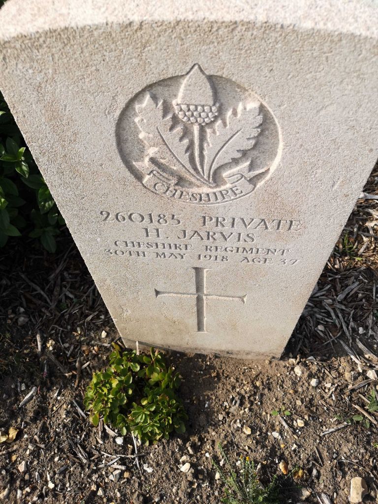 30/05/1918 Private Harry Jarvis (Age 37) 15th Bn. St. Sever Cemetery Extension, Rouen, Seine-Maritime France. ‘260185’ Husband of Isabella M. Savage (formerly Jarvis), of 32, Lynthorpe Avenue, Cadishead, Manchester. (pic findagrave.com – with thanks)