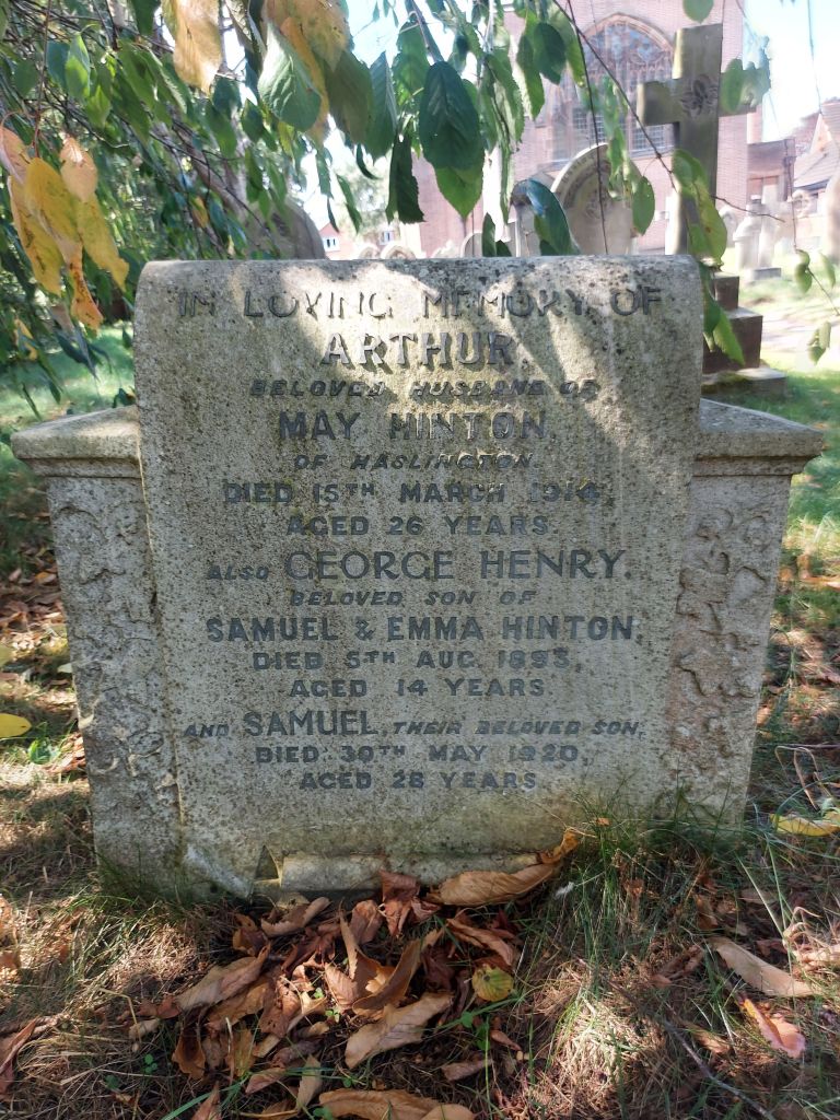 30/05/1920 Private Samuel Hinton Depot Haslington (St. Matthew) Churchyard, Cheshire United Kingdom. ‘35088’ Son of Samuel and Emma Hinton. Born at Haslington. (pic findagrave.com – with thanks)