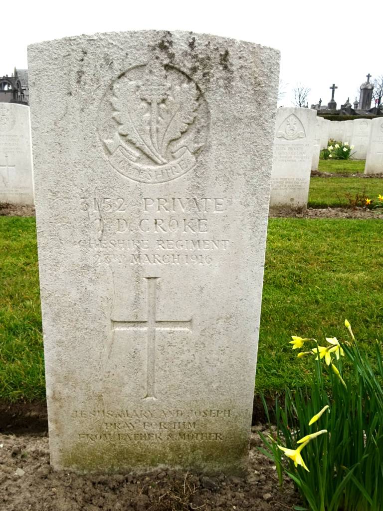 25/05/1915 Private Charles William Jennings (Age 19) 2nd Bn. Ypres (Menin Gate) Memorial, West-Vlaanderen Belgium. ‘25241’ Son of William and Mary Helen Jennings, of 15, Dog Lane, Nantwich, Cheshire.