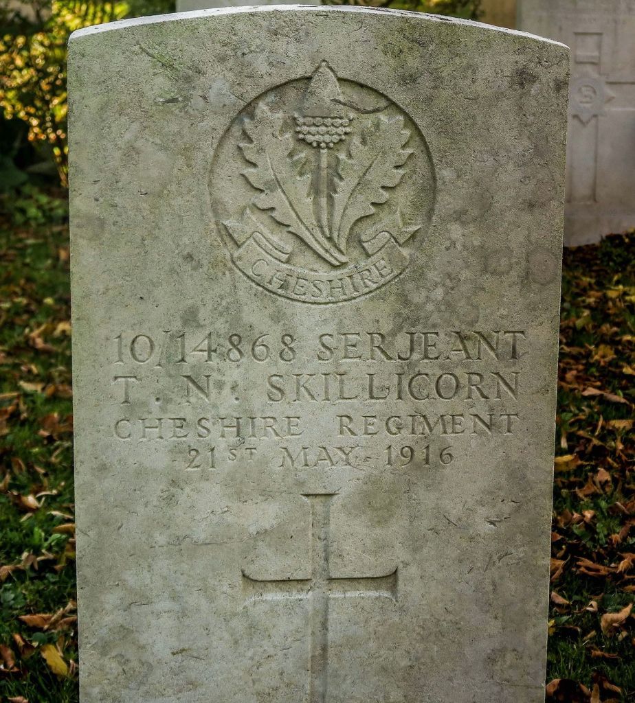 25/05/1915 Serjeant Henry Ambrose Sparrow (Age 27) 1st Bn. Tuileries British Cemetery, West-Vlaanderen Belgium. ‘8746’ Son of John Ambrose Sparrow and Sarah Ann Sparrow, of Birkenhead; husband of Mary Holt (formerly Sparrow), of 8, Kensington St., Belfast.