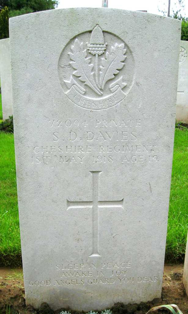 1/05/1918 Private Sydney David Davies (Age 19) 11th Bn. Esquelbecq Military Cemetery, Nord France. ‘72094’ Son of Mr. and Mrs. Thomas Davies, of 71, Pant Bach Rd., Whitchurch, Glam. (pic findagrave.com – with thanks)
