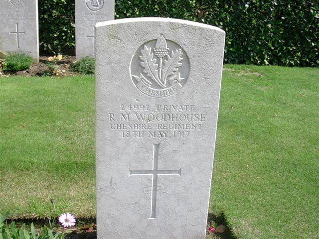 18/05/1917 Private Richard Melling Woodhouse 1st Bn. Roclincourt Military Cemetery, Pas de Calais France. ‘24992’ (pic findagrave.com – with thanks)