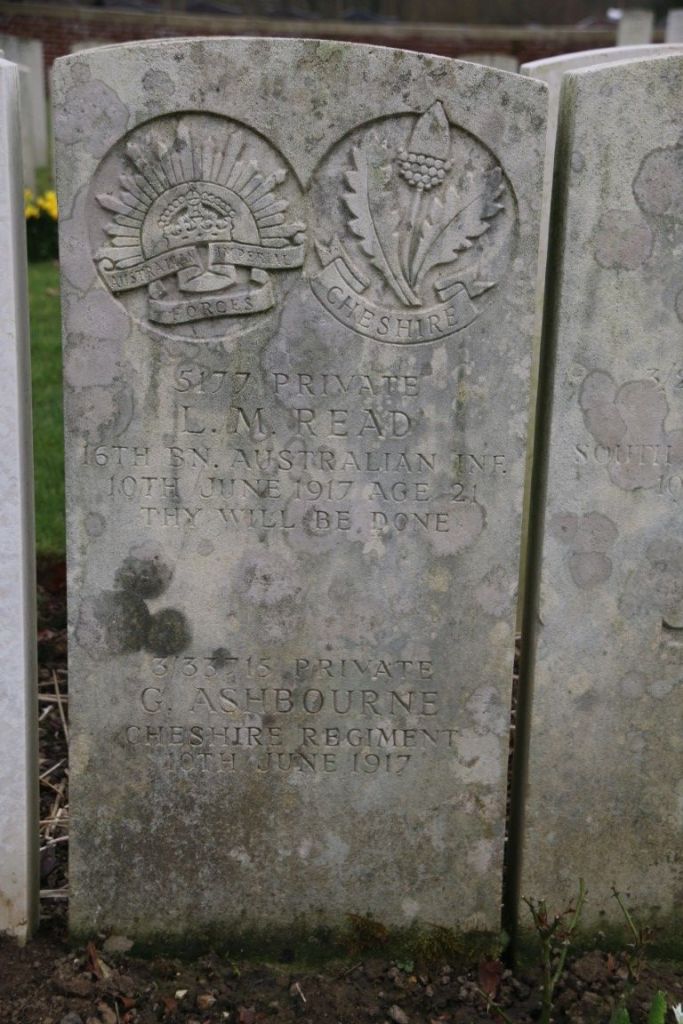 10/06/1917 Private George (Arthur) Ashbourne 11th Bn. Bailleul Communal Cemetery Extension, Nord, Nord France. ‘3/33715’ (pic from findagrave.com – with thanks)