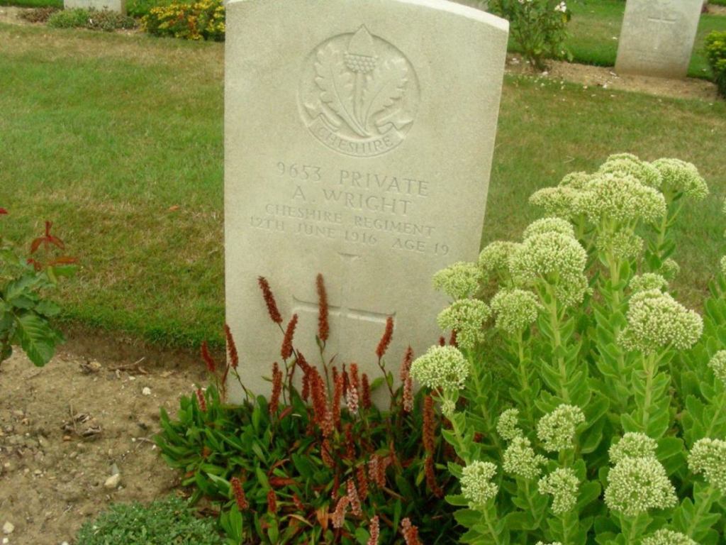 12/06/1916 Private Arthur Wright (Age 19) 1st Bn. Faubourg D’amiens Cemetery, Arras, Pas de Calais France. ‘9653’ Son of Andrew and Ellen Wright, of 125, Grenville St., Edgeley, Stockport. (pic from findagrave.com – with thanks)