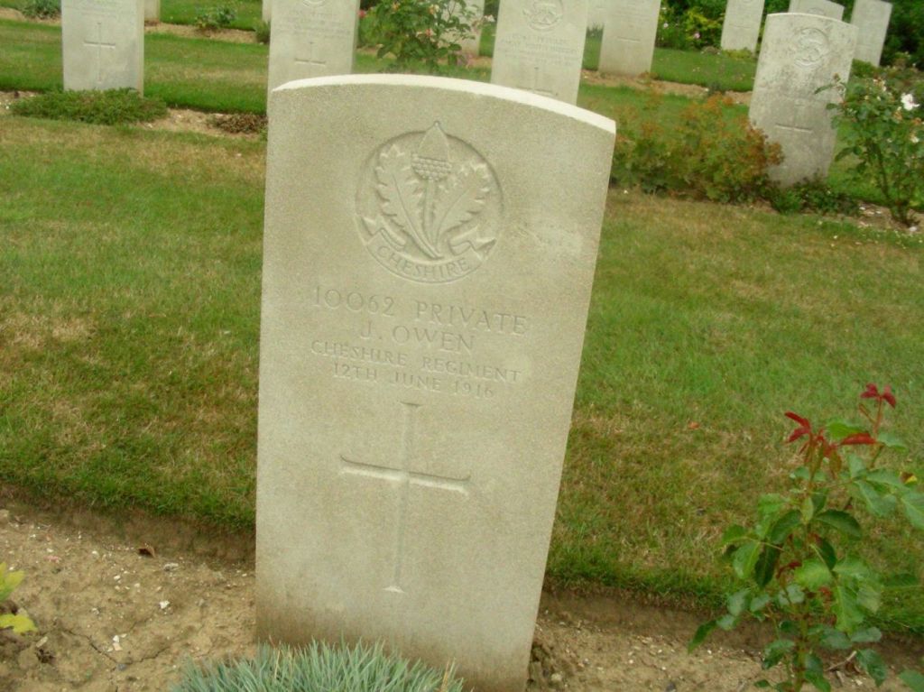 12/06/1916 Private John Owen 1st Bn. Faubourg D’amiens Cemetery, Arras, Pas de Calais France. ‘10062’ (pic from findagrave.com – with thanks)