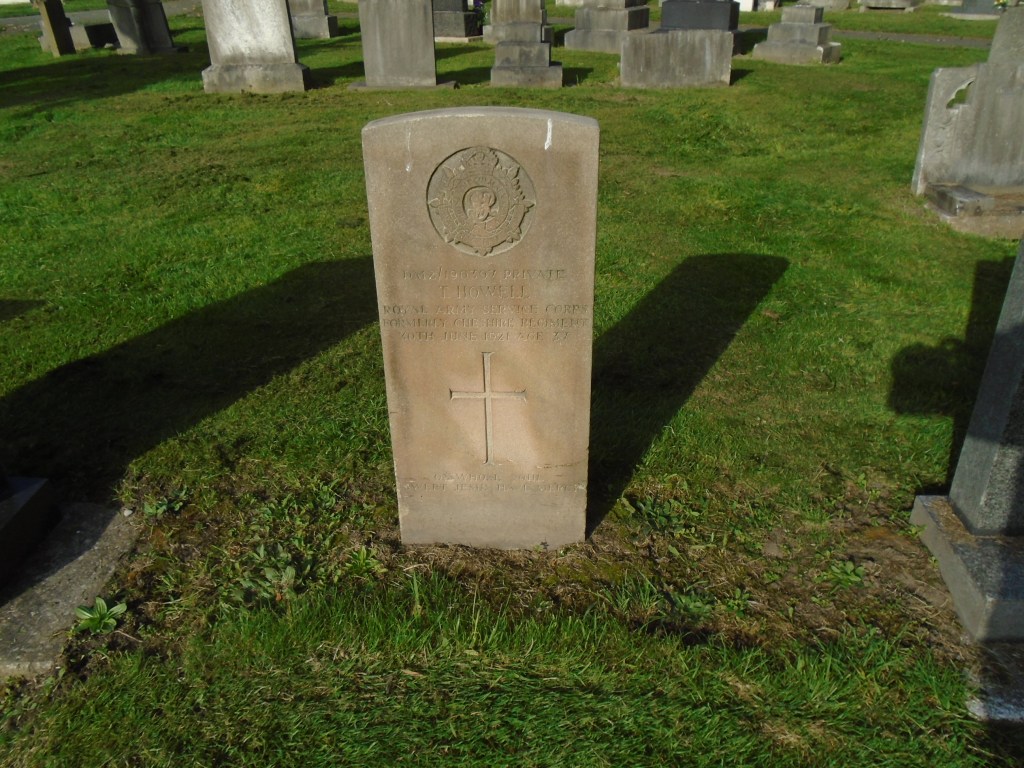 30/06/1921 Private Thomas Howell (Age 37) 1st/4th Bn. attached RASC MT DM2/190397 Wallasey (Rake Lane) Cemetery, Cheshire United Kingdom. 3. R.C. 39. Son of Miles and Jane Howell; husband of Margaret Rosalie Howell, of 11, Lansdowne Rd., Wallasey. Born at Liscard, Wallasey. Served at Gallipoli. (pic from findagrave.com – with thanks)