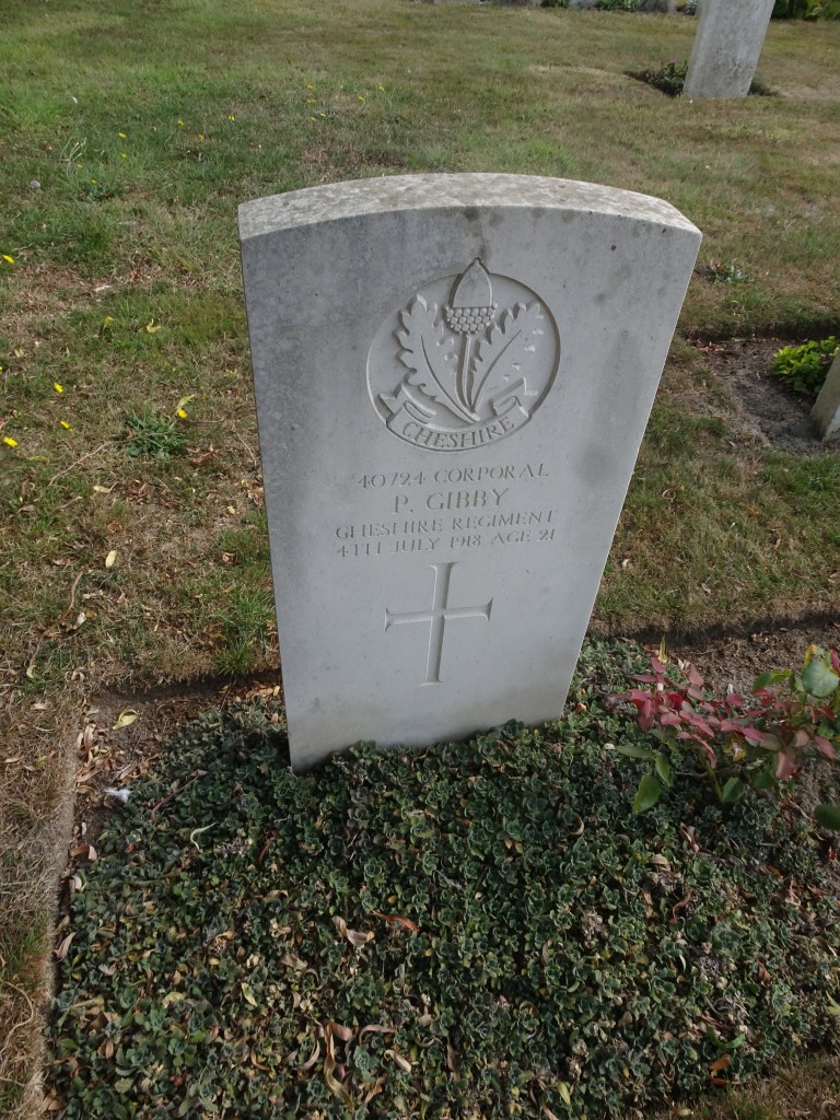 4/07/1918 Corporal Price Gibby (Age 21) 15th Service Bn. Westoutre British Cemetery, West-Vlaanderen Belgium. ‘40724’ Son of David and Magdalen Gibby, of Royal Oak. Newport, Pembrokeshire.