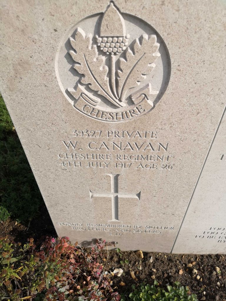 4/07/1917 Private William Canavan (Age 26) 19th Bn. St. Sever Cemetery Extension, Rouen, Seine-Maritime France. ‘39327’ Son of Mrs. C. Canavan, of 63, Scott St., Barrow-in-Furness. (pic from findagrave.com – with thanks)