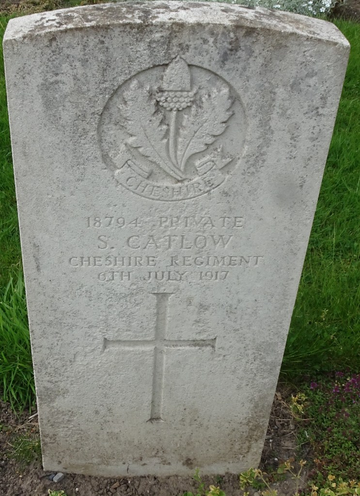6/07/1917 Private Samuel Catlow 9th Bn. Gwalia Cemetery, West-Vlaanderen Belgium. ‘18794’ (pic from findagrave.com – with thanks)