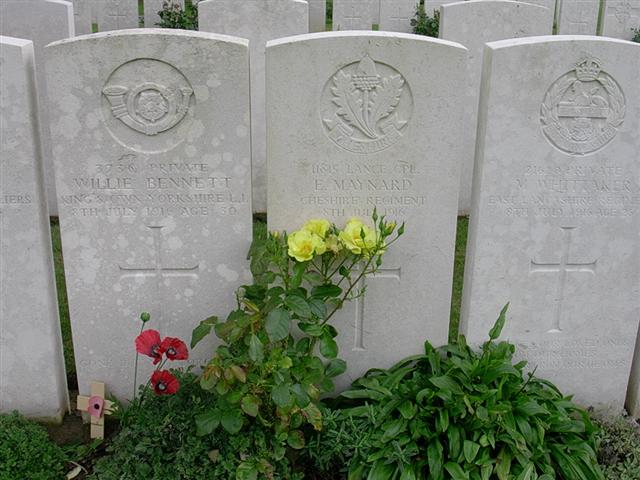 8/07/1916 Lance Corporal Ernest Maynard 9th Bn. Warloy-Baillon Communal Cemetery Extension, Somme France. ‘11815’ (pic from findagrave.com – with thanks)