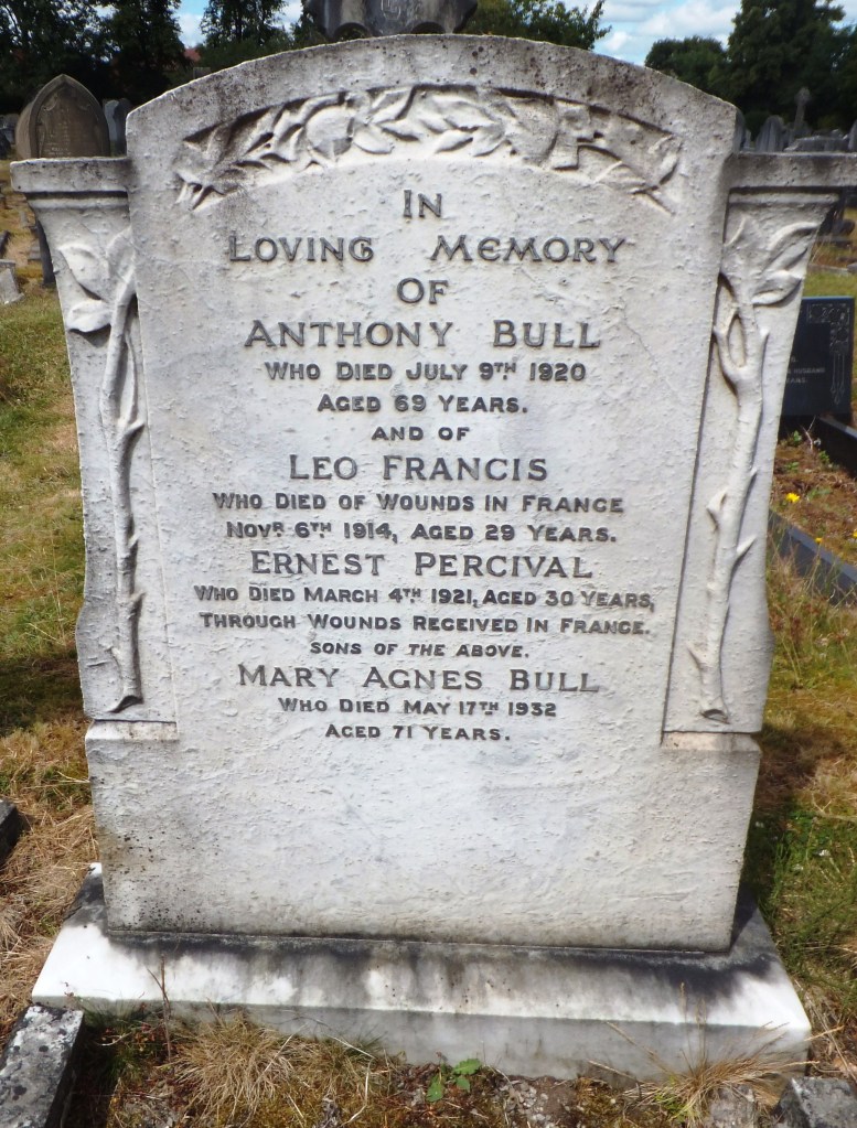 12/07/1920 Colour Serjeant Anthony Bull 14th Bn. Hale Cemetery, Cheshire United Kingdom. ‘12657’ (pic from findagrave.com – with thanks)