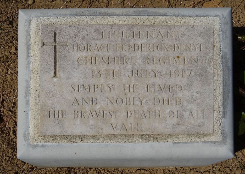13/07/1917 Lieutenant Horace Frederick Denyer (Age 39) MID 12th Bn. Karasouli Military Cemetery, Greece. Son of Edwin and Selina Frances Denyer, of Windsor, Berks. (pic from findagrave.com – with thanks)