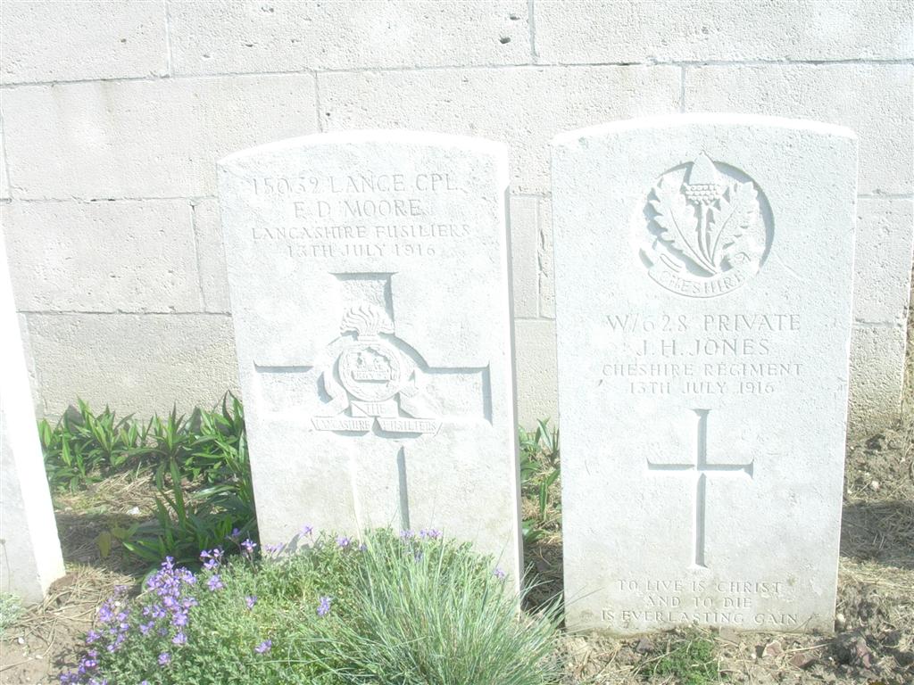 13/07/1916 Private John Henry Jones (Age 22) 13th Bn. Etaples Military Cemetery, Pas de Calais France. ‘W/628’ Son of Ellen and the late William Jones, of 15, Adelaide St., Poulton, Wallasey, Cheshire. Native of Llanfairpwllgwyngyll. (pic from findagrave.com – with thanks)