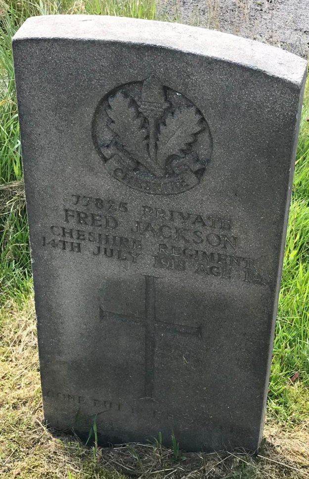 14/07/1918 Private Fred Jackson (Age 19) 24th Bn. Saddleworth (St. Chad) New Churchyard, Yorkshire United Kingdom. ‘77825’ Son of Joseph and Margaret Jackson, of Austerlands. (pic from findagrave.com – with thanks)