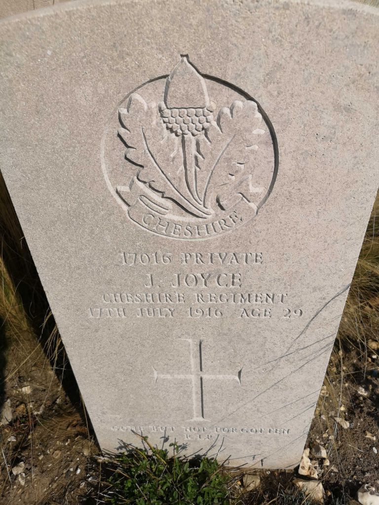 17/07/1916 Private James Joyce (Age 29) 11th Bn. St. Sever Cemetery, Rouen, Seine-Maritime France. ‘17016’ Son of the late John and Catherine Joyce. (pic from findagrave.com – with thanks)