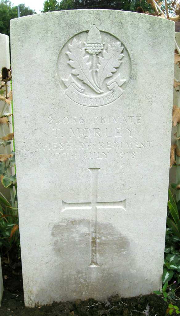 17/07/1918 Private Thomas Morley 15th Bn. Esquelbecq Military Cemetery, Nord France. ‘23056’ (pic from findagrave.com – with thanks)