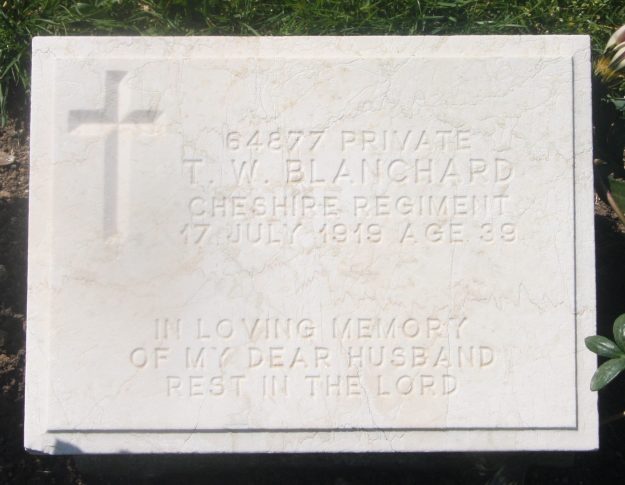 17/07/1919 Private Thomas William Blanchard (Age 39) 12th Bn. Haidar Pasha Cemetery, Turkey (including Gallipoli). ‘64877’ Son of Henry and Jane Blanchard, of 2, Trimby St., Peckham; husband of Rossetta Annie Collins (formerly Blanchard), of 59, Green Hundred Rd., Peckham, London. (pic from findagrave.com – with thanks)