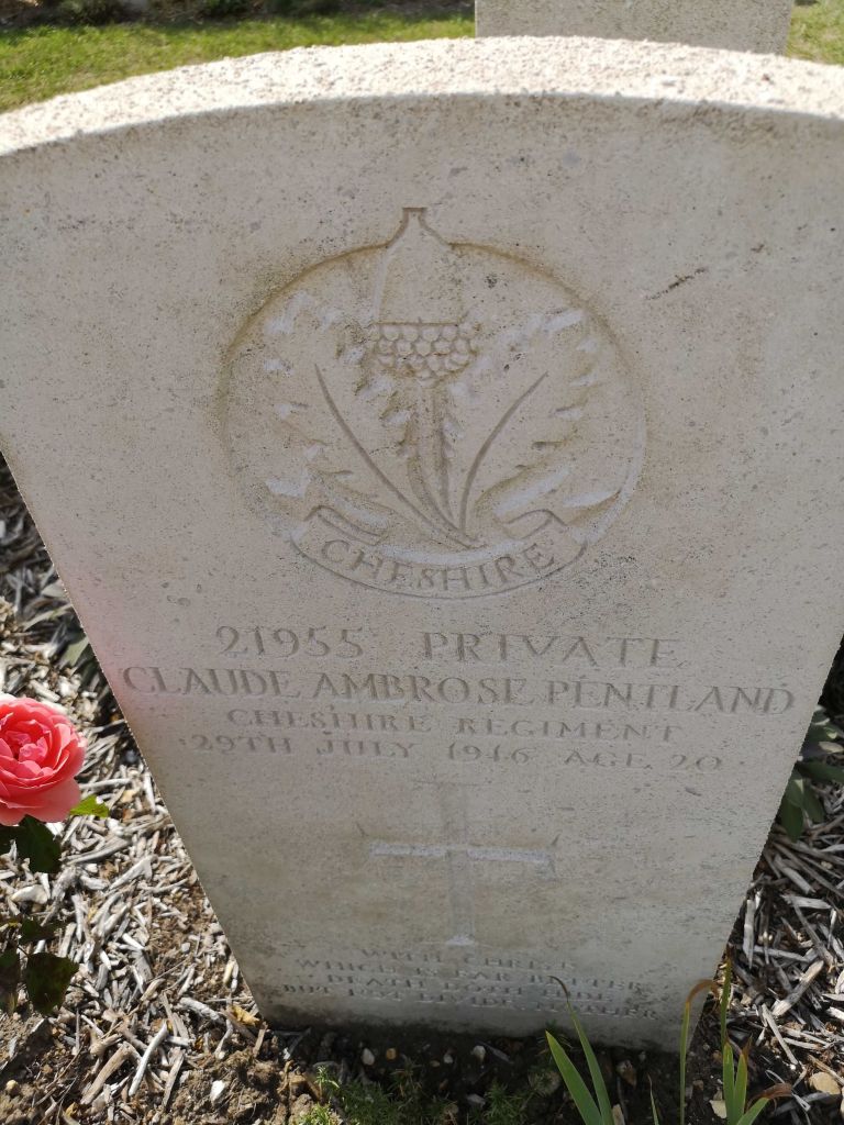29/07/1916 Private Claude Ambrose Pentland (Age 20) 16th Bn. St. Sever Cemetery, Rouen, Seine-Maritime France. ‘21955’ Son of John and Margaret Pentland, of 89, Claudia St., Walton, Liverpool. (pic from findagrave.com – with thanks)
