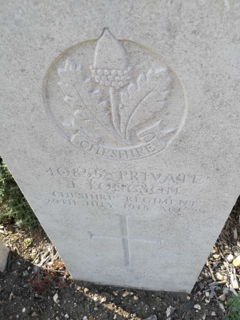 29/07/1918 Private Jack Longson (Age 24) 1st/4th Bn. St. Sever Cemetery Extension, Rouen, Seine-Maritime France. ‘40855’ Son of Henry and Elizabeth Longson, of 16, Bakewell St., Edgeley, Stockport. (pic from findagrave.com – with thanks)
