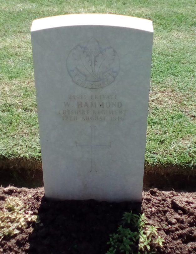 12/08/1916 Private William Hammond 2nd Bn. Salonika (Lembet Road) Military Cemetery, Greece. ‘25915’ (pic from findagrave.com. – with thanks)