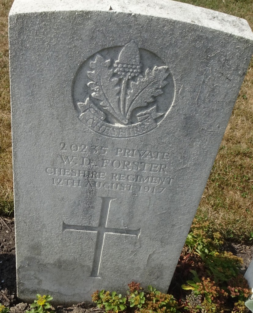 12/08/1917 Private William Dickson Forster 13th Bn. Mendinghem Military Cemetery, West-Vlaanderen Belgium. ‘20235’