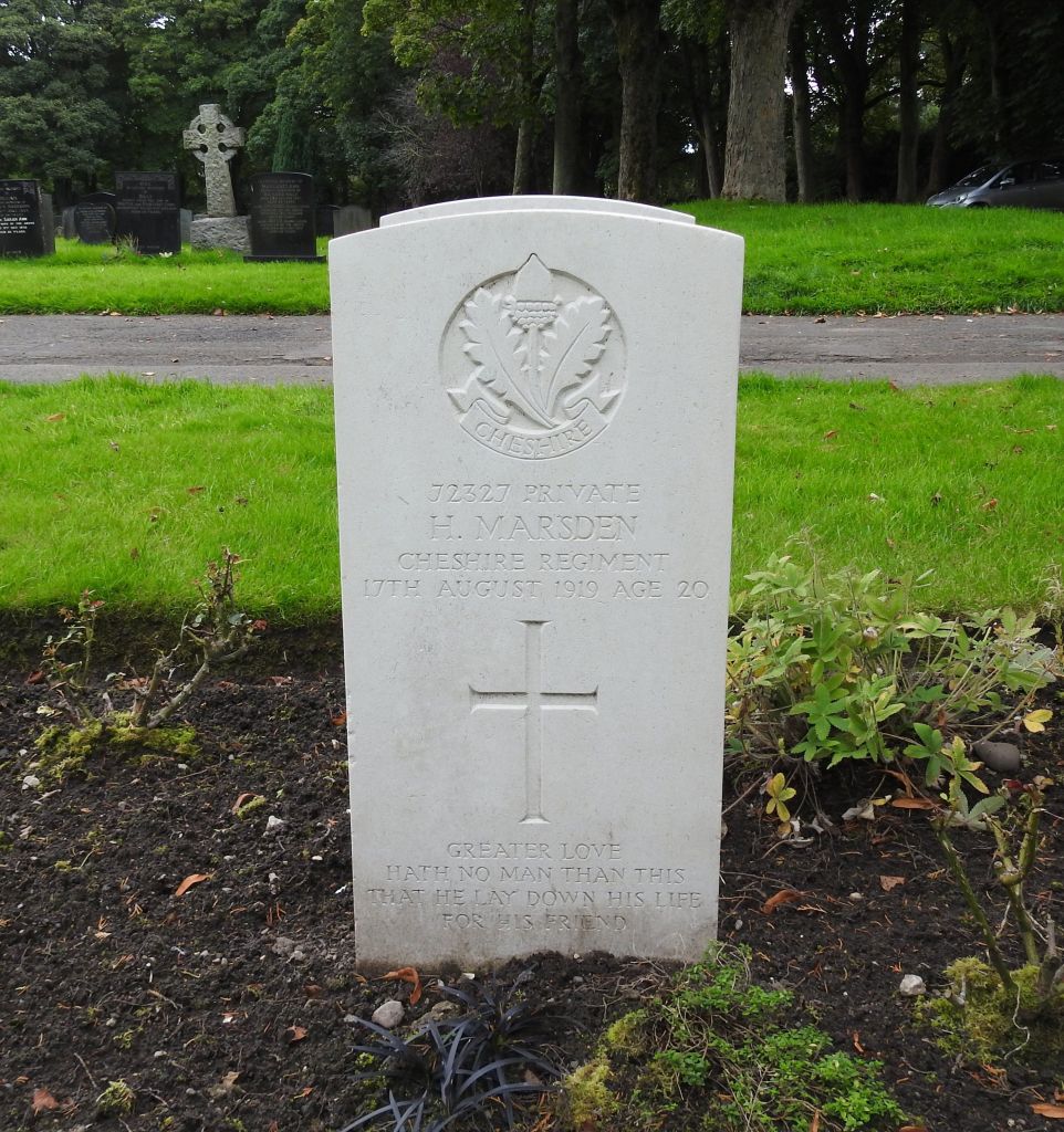 17/08/1919 Private Herbert Marsden (Age 20) 10th Bn. Carlisle (Dalston Road) Cemetery, Cumberland United Kingdom. ‘72327’ Son of Ellen Marsden, of 53, East Norfolk St., Carlisle, and the late John Marsden.