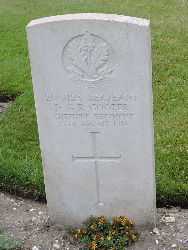 17/08/1918 Serjeant Donald George Reginald Cooper 1st/4th Bn. St. Sever Cemetery Extension, Rouen, Seine-Maritime France. ‘200123’ (pic from findagrave.com. – with thanks)