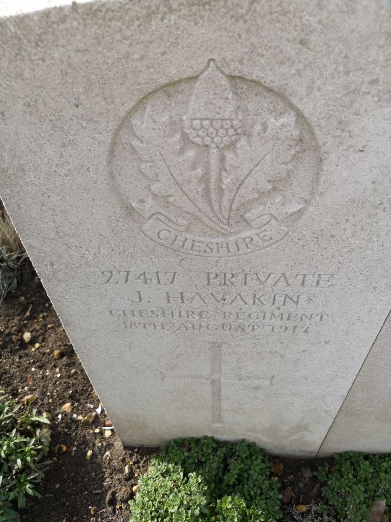 18/08/1917 Private James Havakin 1st Bn. St. Sever Cemetery Extension, Rouen, Seine-Maritime France. ‘27417’ (pic from findagrave.com. – with thanks)