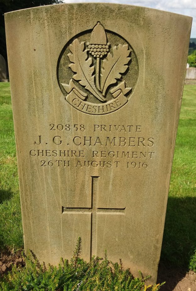 26/08/1916 Private John Gregory Chambers 16th Bn. Londonthorpe (St. John The Baptist) Churchyard, Lincolnshire United Kingdom. ‘20858’ (pic from findagrave.com. – with thanks)