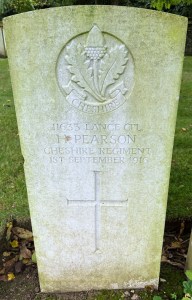 1/09/1916 Lance Corporal Herbert Pearson 1st Bn. Quarry Cemetery, Montauban, Somme France. ‘11633’ (pic from findagrave.com. – with thanks)