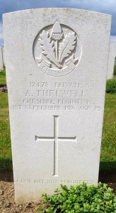 1/09/1916 Private Arthur Thelwell (Age 19) 1st Bn. Dive Copse British Cemetery, Sailly-Le-Sec, Somme France. ‘12478’ Son of J. and Mary Thelwell, of Spurstow, Tarporley, Cheshire. (pic from findagrave.com. – with thanks)