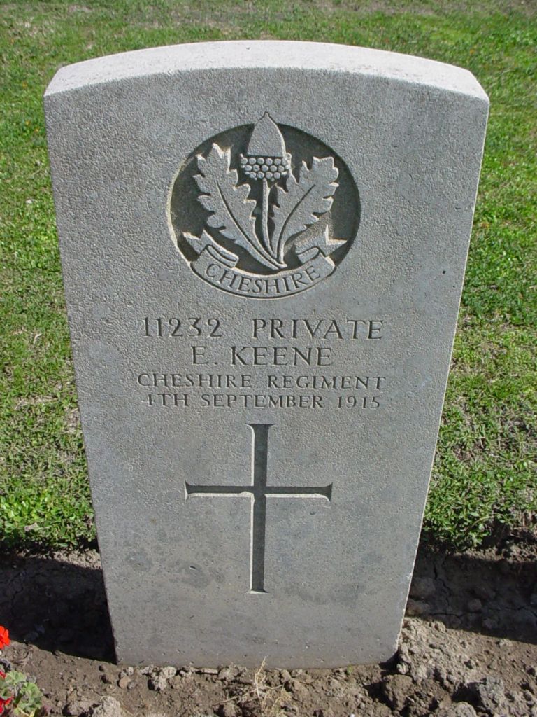 4/09/1915 Private Edward Keene 8th Bn. Alexandria (Chatby) Military and War Memorial Cemetery, Egypt. ‘11232’ (pic from findagrave.com. – with thanks)